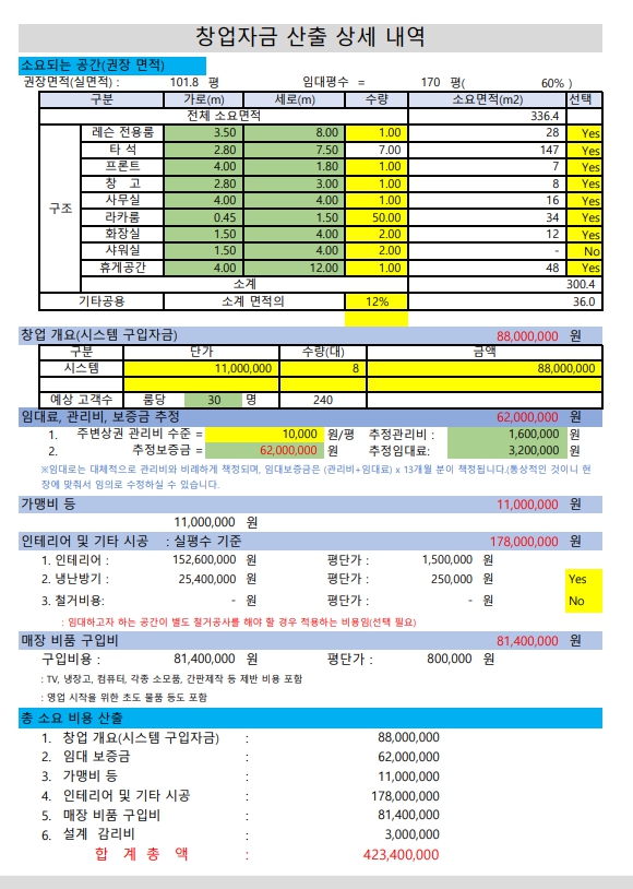 1. 총 매출예상 : 보통 타석당 매출금액 제안 사항입니다.